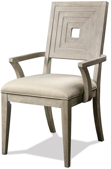 The Riverside Furniture Upholstered Wood Back Arm Chair is a piece from the Cascade Collection. This Cascade Arm Chair is constructed of hardwood solid with a Dovetail finish and is upholstered with a Performance Polyester fabric.Read More