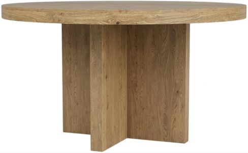 The Davie Round Dining Table blends rustic elegance with durable craftsmanship. Made from select hardwoods and Oak veneers, it features a grand-scaled X-style base for a bold yet stylish look. With a 54-inch diameter and 30-inch height, it offers a cozy, inviting space for dining and entertaining.Read More