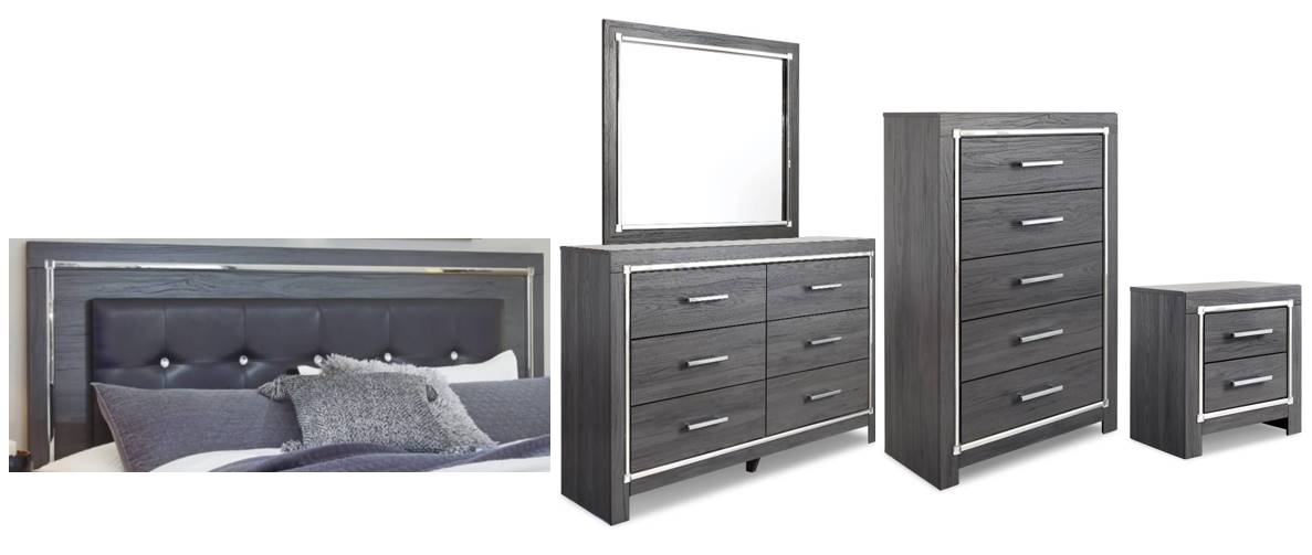 Includes headboard, 6-drawer dresser with mirror, 5-drawer chest and 2-drawer nightstand