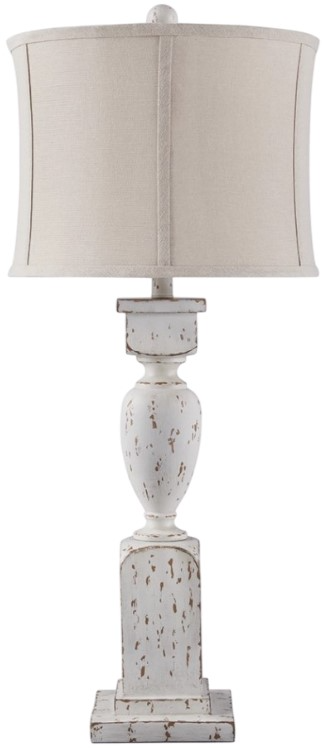 This table lamp takes a classic approach to tasteful lighting. Its detailed base ushers an air of elegance into your space with a graceful turn design. Outfitted with an antiqued white finish, it's right at home in traditional spaces. Pair with the matching floor lamp (sold separately) for double the style.Read More