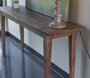Elevate your living room with this Sofa Table from Jackson Collection. Shown in a taupe wood finish, this item itself provides compliments to other furniture surrounding it. Make a bold statement by incorporating this stunning furniture into your home.Read More