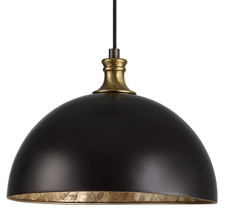 We have taken the simple look of a metal dome pendant in a pacific bronze finish with antique brass accents and have added a wow of opulence by adding warm antiqued capiz shell and lined the interior for a wonderful transitional style.Read More