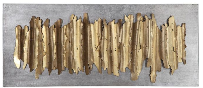 Finished in an antique gold leaf and set on a distressed silver leaf iron backing