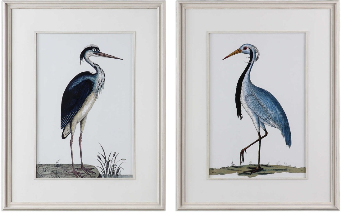 Add A Dash Of Wayfaring Style To A Design With This Coastal Artwork. Adding A Light And Airy Feel To A Space, Each Bird Print Is Accented By A Clean, White Mat And Is Surrounded By Distressed, Whitewashed Wooden Frames And Matching Fillets. Each Print Is Placed Under Protective Glass.