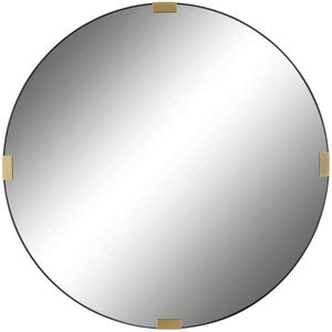 This round mirror's sleek design makes it the perfect modern accent. The iron band frame is finished in satin black and is accented by lightly antiqued gold leaf details. Make a bold statement by incorporating this stunning home decor into your home.Read More