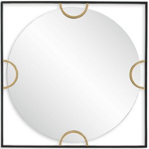 A square iron frame finished in satin black surrounds a suspended, round polished edged mirror, held with antique gold half round iron bands. And this will be a great fit into your house.Read More