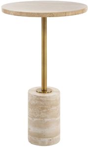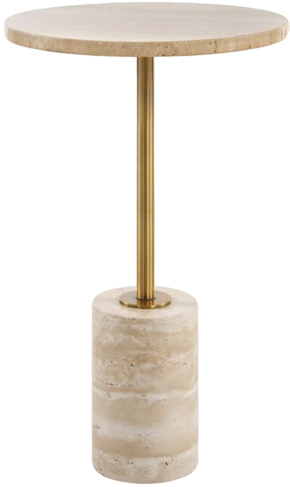This accent table features a travertine top and base supported by a metal stem in a rich brass finish. The combination of these elements creates an organic and sophisticated aesthetic, perfect for enhancing any room.Read More