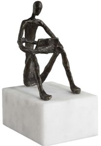 This sculpture captures the essence of tranquility as it depicts a figure in a relaxed seated position, engrossed in the simple pleasure of reading. The cast iron figure is finished in dark brown, enriched with bronze highlights, and sits atop a white marble base. This visually stunning piece effortlessly complements any space.Read More