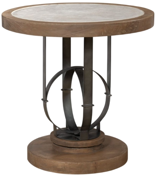 This side table is handcrafted from solid mahogany wood in a light oak finish with an oatmeal glaze, accented with a natural beveled stone top. Features a forged iron decorative orb base finished in aged steel.Read More